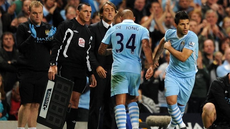 Aguero menjadi pemain pengganti saat Manchester City mengawali musim 2011/2012 dengan menjamu Swansea City pada 15 Agustus 2011 dan bikin dua gol. (Foto: Chris Brunskill/Getty Images)