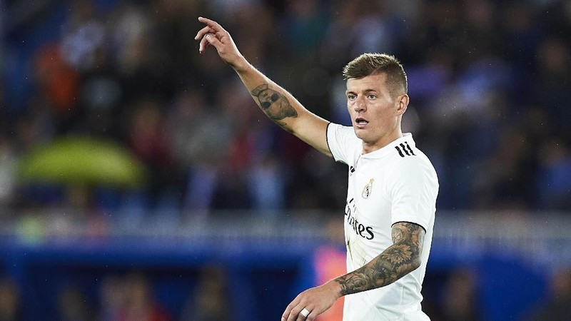Gelandang: Toni Kroos (Real Madrid). Kroos cukup rajin bertahan dengan membuat rata-rata 1 kali tekel, 0.7 intersepsi per laga. Kroos juga aktif membantu serangan dengan melepaskan 1.1 shots, 1.1 crossing, dan membuat 1.6 umpan kunci per laga, dengan keberhasilan umpannya mencapai 94.4%. Statistiknya di La Liga lebih oke dari Luka Modric musim ini. (Foto: Juan Manuel Serrano Arce/Getty Images)