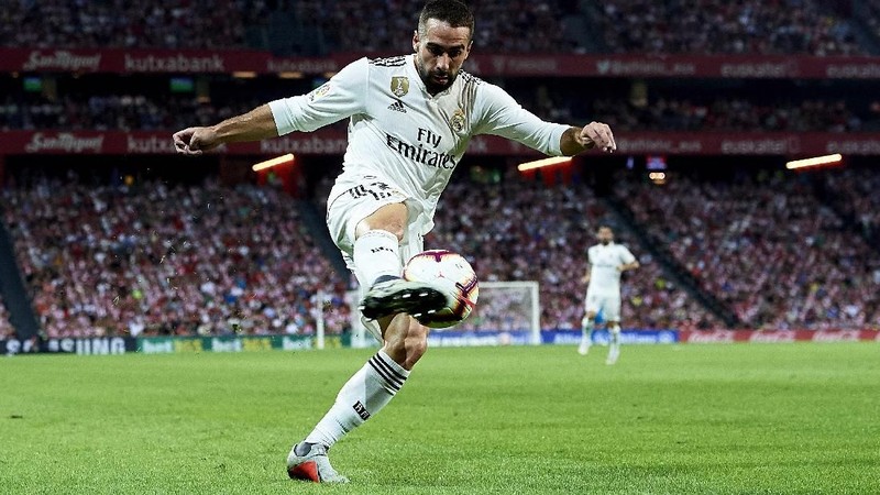 Bek Kanan: Daniel Carvajal (Real Madrid) layak menjadi bek kanan dalam starting XI El Clasico nanti. Carvajal tercatat membuatĀ 1.4 tekel dan 1.4 intersepsi per laga, juga rata-rata membuat 1.2 umpan kunci, dengan total persentase umpannya mencapai 91.7%. (Foto: Juan Manuel Serrano Arce/Getty Images)