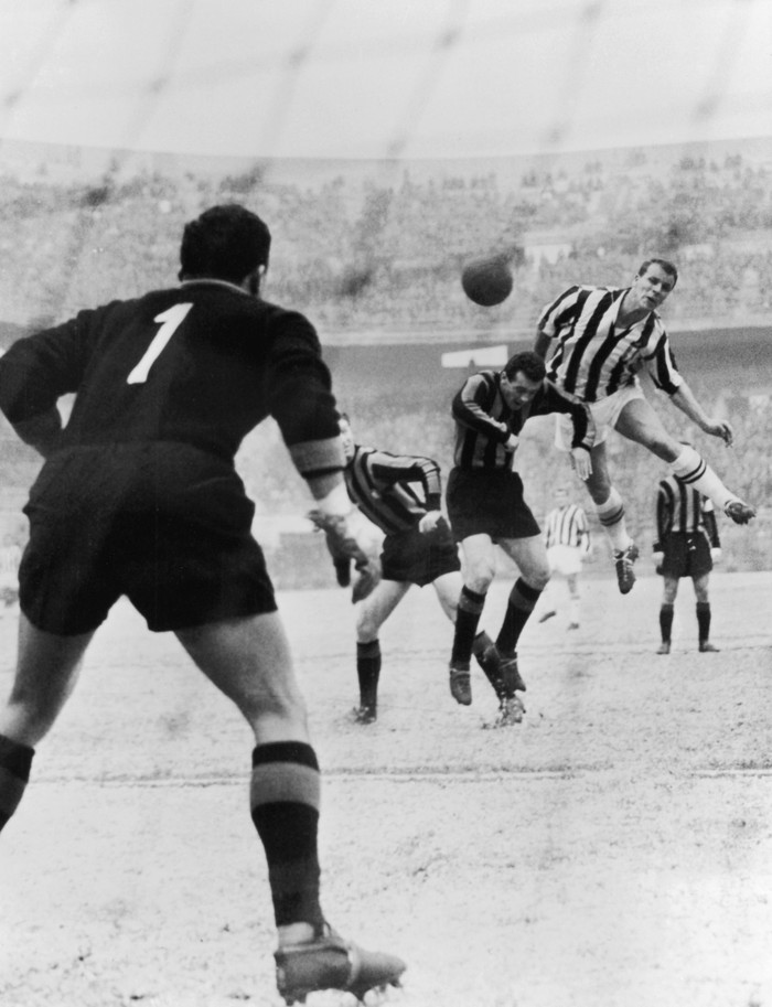 Di akhir musim 1964/1965, Inter yang ditangani Helenio Herrera dalam jalur menuju treble usai merebut Scudetto dan Piala Champions musim itu. Hanya Coppa Italia tersisa untuk dimenangi. Tapi gol Giampaolo Menichelli di menit ke-15 membuat Inter dalam tekanan dan tak pernah bisa menyamakan skor. Laga ini diwarnai dua kartu merah, masing-masing satu untuk Luis de Sol (Juventus) dan Tarcisio Burgnich (Inter Milan). (Foto: Photo by Keystone/Getty Images)