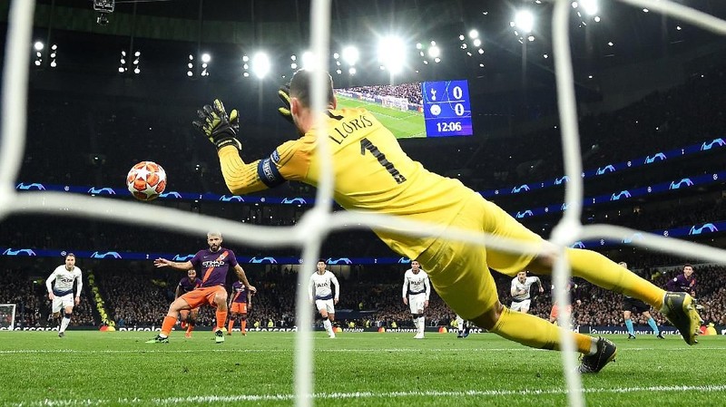 Hugo Lloris bermain apik saat Tottenham Hotspur mengalahkan Manchester City. Kiper asal Prancis itu menggagalkan penalti Sergio Aguero. (Foto: Mike Hewitt/Getty Images)