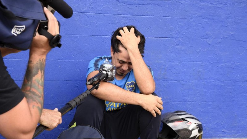 Ini sudut lain dari fans Boca Junior yang terpukul dengan meninggalnya Maradona. (Foto: Getty Images/Rodrigo Valle)