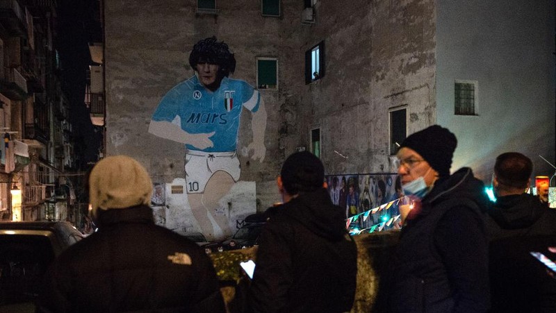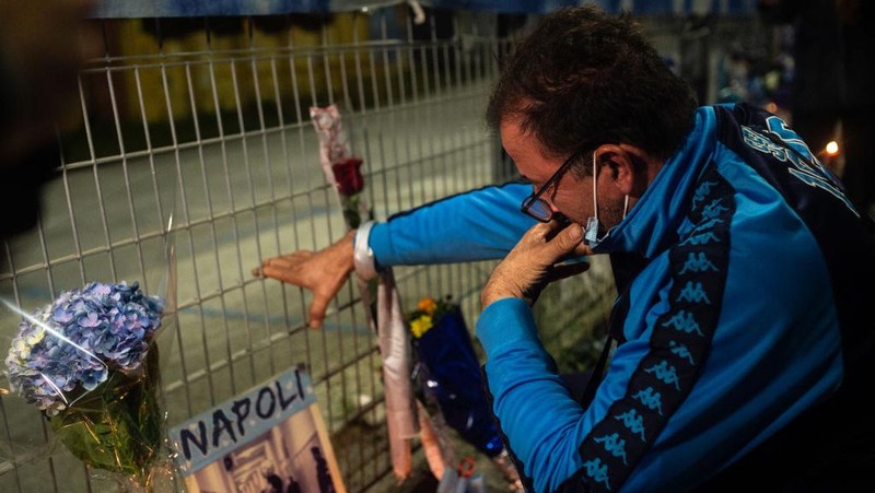 Bukan cuma Argentina yang menangisi Maradona. Kota Naples, Italia, juga sangat kehilangan. Maradona diperlakukan bak dewa oleh warga Naples. (Foto: Getty Images/Ivan Romano)