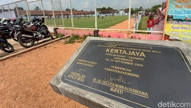 Lapangan bola ini terletak di Kecamatan Cikampek, Karawang dan diresmikan tahun 2020 oleh Bupati Karawang. (Foto: dok. detikcom/Yuda Febrian Silitonga)