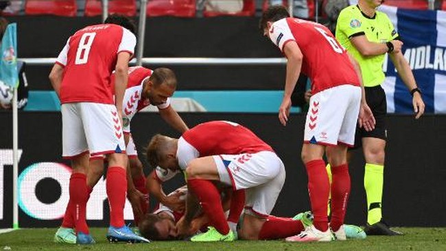 Jakarta - Denmark vs Finlandia diwarnai momen Christian Eriksen kolaps sebab henti jantung. Pacarnya, Sabrina Kvist Jensen, ditenangkan dua pemain tim Dinamit.