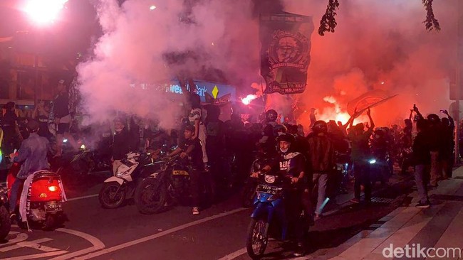 Pantauan detikcom, sejumlah kawasan di tengah Kota Surabaya dipadati Bonek. Seperti di Jalan Panglima Sudirman. Para Bonek berkonvoi sambil menyalakan flare untuk merayakan ulang tahun klub kesayangan mereka.
