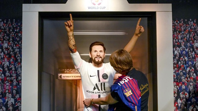 Jerman - Patung lilin pesepakbola Lionel Messi di Madame Tussauds Berlin akhirnya diganti. Messi yang sebelumnya mengenakan jersey Barcelona kini berubah jadi PSG.
