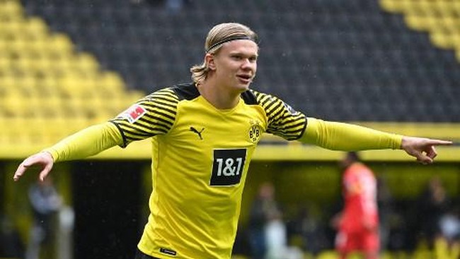 Erling Haaland menempati urutan ke-10 dalam 10 besar nominasi pemain terbaik UEFA 2020/2021. Striker Borussia Dortmund itu meraih 15 poin dari juri. Musim lalu, striker 21 tahun itu tampil tajam dengan bikin 41 gol, termasuk menjadi topscorer di Liga Champions. (Foto: INA FASSBENDER/AFP)