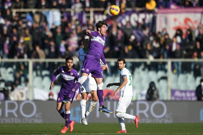 Begini aksi teranyar Dusan Vlahovic untuk Fiorentina ketika melawan Sassuolo. (Foto: Getty Images/Alessandro Sabattini)