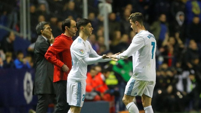 Ini adalah momen di laga Real Madrid vs Levante 2018. Ronaldo digantikan Marco Asensio. Foto: Heino Kalis/REUTERS