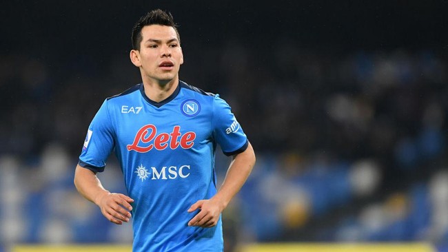 Disponsori oleh apparel Emporio Armani, Napoli memang tampil penuh gaya di musim ini. Gambar di atas adalah Hirving Lozano memakai jersey kandang yang dipakai di Serie A. Foto: Getty Images/Francesco Pecoraro