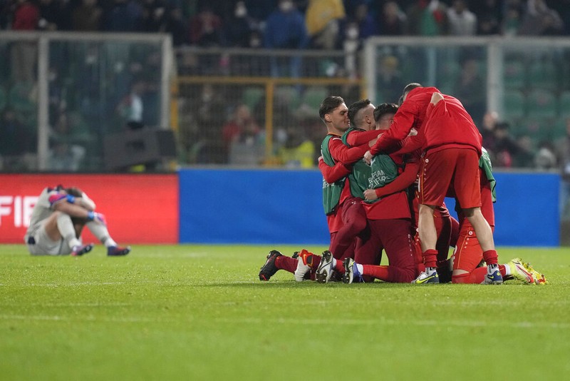 Jumat (25/3) kemarin, Italia kalah 0-1 dari Makedonia Utara pada semifinal playoff Piala Dunia 2022. Gianluigi Donnarumma gagal membendung tembakan jarak jauh Aleksandar Trajkovski di menit akhir (AP)