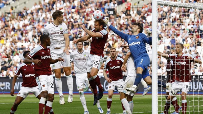 West Ham United menjamu Burnley di Stadion Olimpiade London, Minggu (17/4/2022). Duel berakhir imbang 1-1. (Foto: Action Images via Reuters/ANDREW BOYERS)