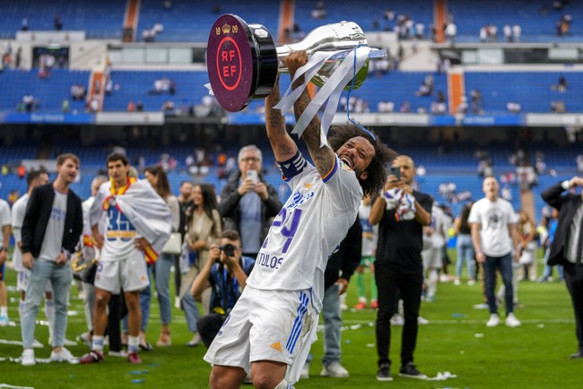 Marcelo baru saja meraih titel Liga Spanyol bersama Real Madrid, Sabtu (30/4) malam WIB. Itu jadi trofi ke-24 miliknya di Real Madrid (AP)