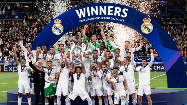 Jakarta - Real Madrid sukses taklukan Liverpool 1-0 dalam final Liga Champions, Minggu (29/5). Kemenangan itu pastikan Real Madrid menjadi juara Liga Champions 2021/2022.