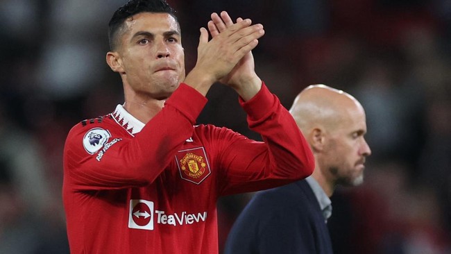 Sepanjang musim panas ini masa depan Cristiano Ronaldo di MU terus dispekulasikan. Apalagi di bawah arahan Erik ten Hag, Ronaldo jadi lebih akrab dengan bangku cadangan. Foto: REUTERS/PHIL NOBLE