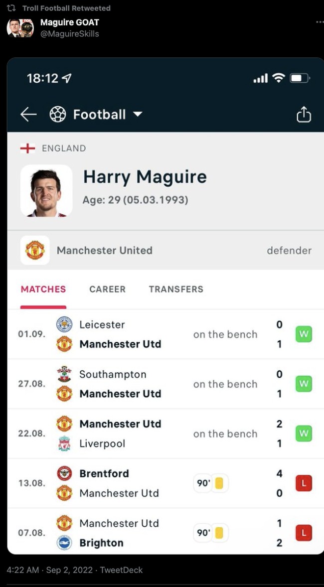 Jakarta - Manchester United merangkai tiga kemenangan beruntun usai mengalahkan Leicester City. Kapten MU Harry Maguire, yang tidak bermain, tetap kena ledekan meme-meme.