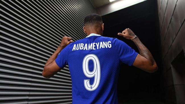 Nomor 9 Chelsea kini akan dipakai Pierre Emerick-Aubameyang. Ia tampaknya tak risau dengan "kutukan" para pendahulunya yang pakai nomor tersebut. Foto: Chelsea FC via Getty Images/Harriet Lander - Chelsea FC