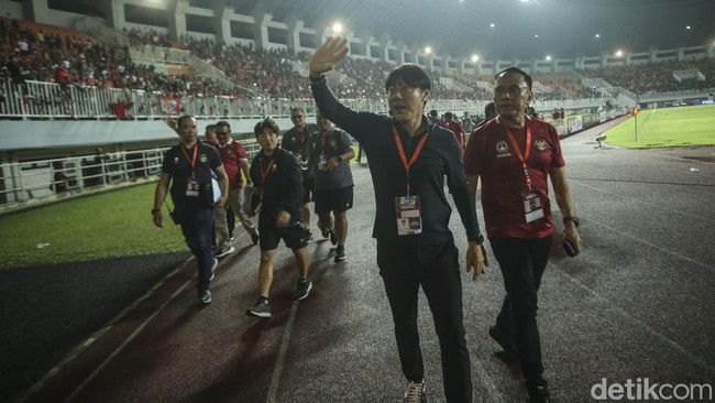 Pemain Timnas Indonesia beserta ofisial menyapa suporter di Stadion Pakansari, Selasa (27/9/2022). Foto: Rifkianto Nugroho/detikcom