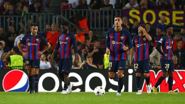 Barcelona tersingkir di fase grup Liga Champions musim ini setelah hanya meraih tujuh poin dari enam laga dan finis di bawah Bayern Munich dan Inter Milan di Grup C. Mereka harus rela pindah ke Liga Europa. Foto: AP/Joan Monfort