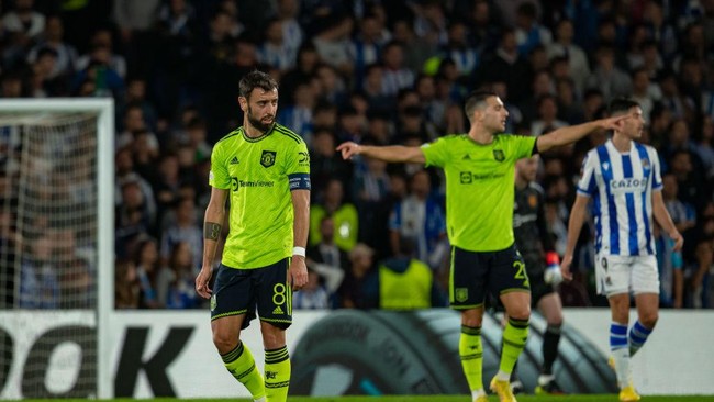 MU mengalahkan Real Sociedad dengan skor 1-0 di laga terakhir fase grup. Hasil itu membuat kedua tim punya head to head saling mengalahkan dengan skor yang sama dan MU kalah dalam selisih gol dari Sociedad. (Foto: Manchester United via Getty Imag/Ash Donelon)