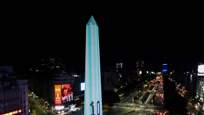 Jelang Argentina Vs Polandia, Obelisk Ini Berbalut Jersey Messi