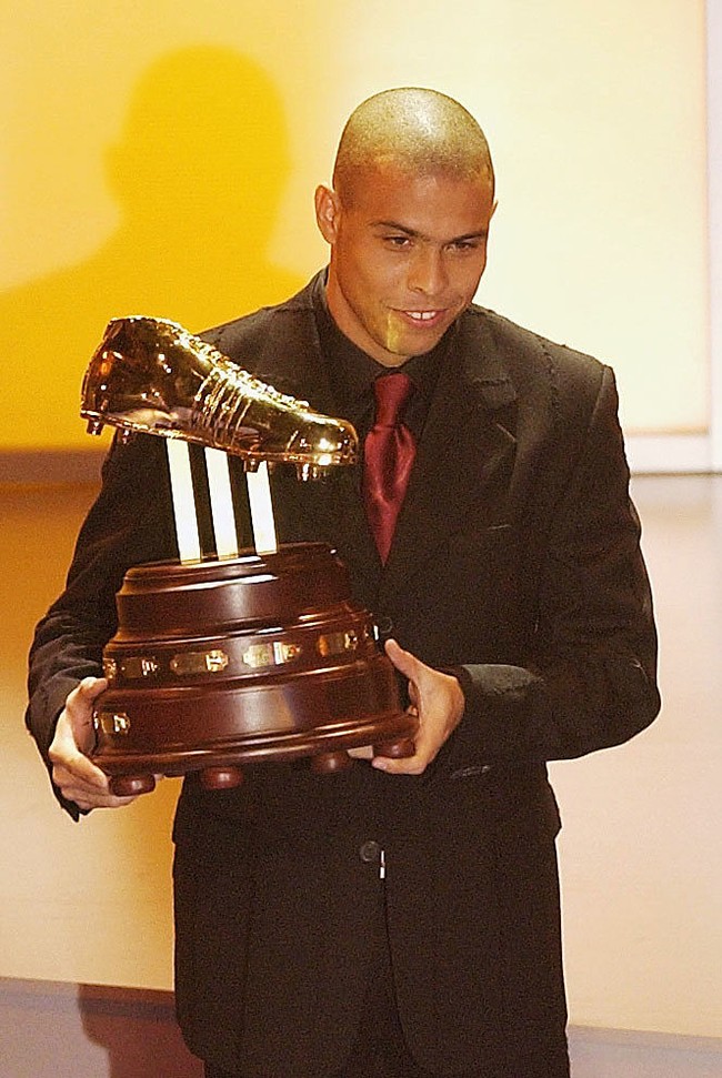 Pada Piala Dunia tahun 2002, pemain Timnas Brasil, Ronaldo, berhasil menjadi penampil paling ikonik di sejarah Piala Dunia. Ronaldo berhasil membawa Brasil menjadi juara Piala Dunia 2002. Ia juga memboyong trofi Sepatu Emas sebagai pemain dengan gol terbanyak yaitu 8 gol. (Shaun Botterill/Getty Images)