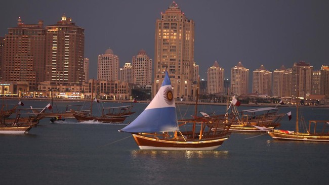 Jelang Semifinal, Perahu di Doha Kibarkan Bendera Argentina hingga Prancis
