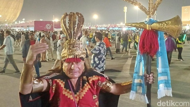 'Dukun' Argentina sudah ada di Stadion Lusail menjelang kickoff, Rabu (14/12/2022) dini hari WIB. Dia menjadi sasaran berfoto. Foto: Lucas Aditya/detikSport
