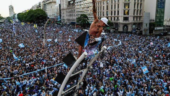 Argentina - Argentina menang dengan skor 3-0 dan melaju ke final Piala Dunia 2022. Hasil ini disambut suka cita warga Argentina sampai mereka menaiki tiang-tiang lampu.