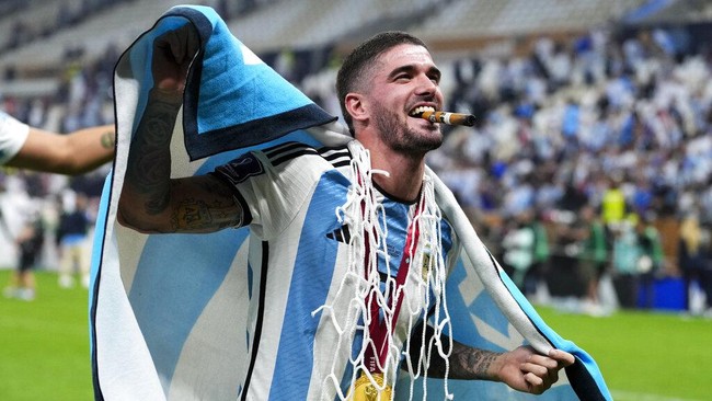 Gaya Rodrigo De Paul Isap Cerutu Usai Juara Piala Dunia