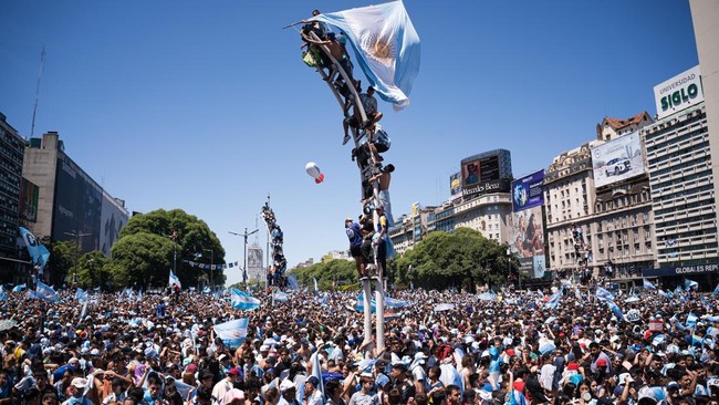 Jutaan warga merayakan kemenangan Piala Dunia di ibu kota Buenos Aires, Argentina, Selasa (20/12/2022) waktu setempat. (Diego Radames/Anadolu Agency/Getty Images)