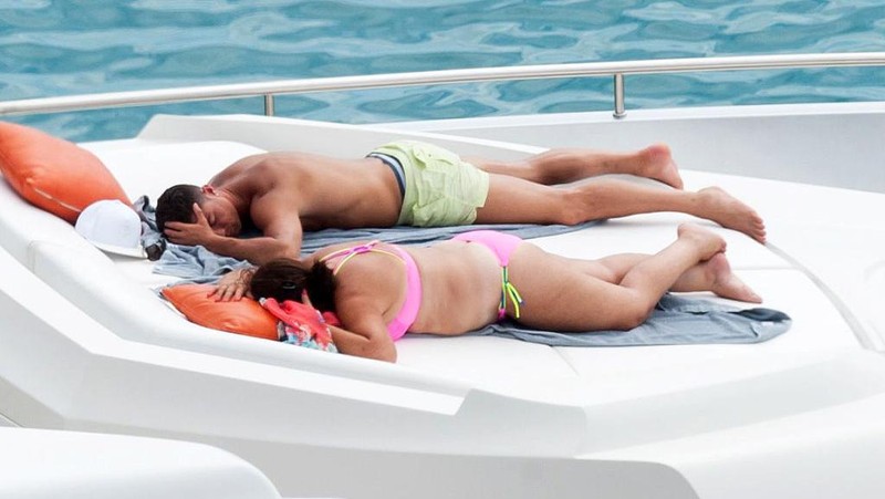 Cristiano Ronaldo dan ibunya Maria Dolores dos Santos Aveiro tampak berjemur bersama di Ibiza, Spanyol. (Europa Press/Getty Images)