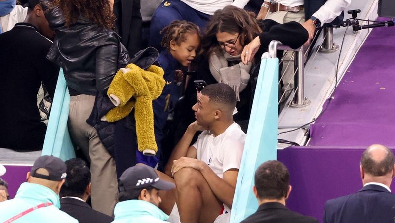 Kylian Mbappe bersama ibunya Fayza Lamari mengikuti pertandingan perempat final Piala Dunia FIFA Qatar 2022 di Al Khor, Qatar. (Jean Catuffe/Getty Images)