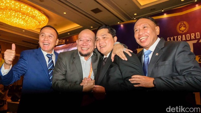 Potret Caketum PSSI Erick Thohir-La Nyalla Mesra Rangkulan di KLB