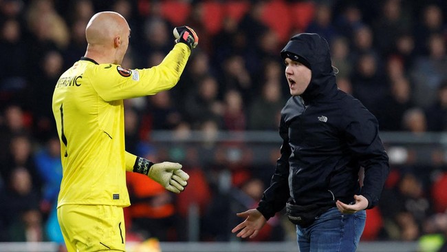Jakarta - Seorang penyusup lapangan melayangkan bogem mentah ke wajah Marko Dmitrovic. Tak tinggal diam, si kiper Sevilla merespons untuk melumpuhkan fans agresif itu.