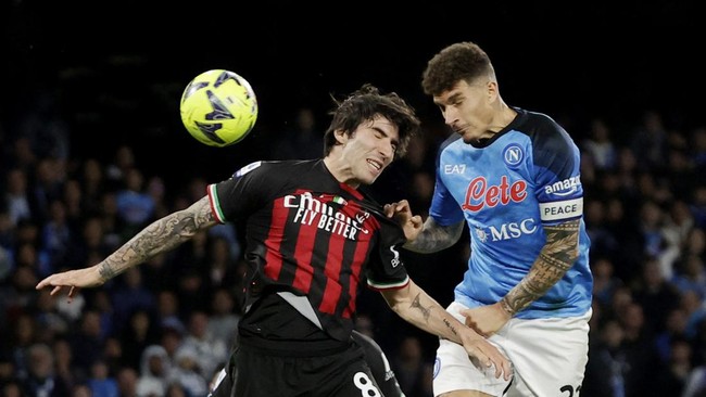 Laga Napoli vs AC Milan digelar di Stadio Diego Armando Maradona, Senin (3/4/2023) dini hari WIB. REUTERS/Ciro De Luca