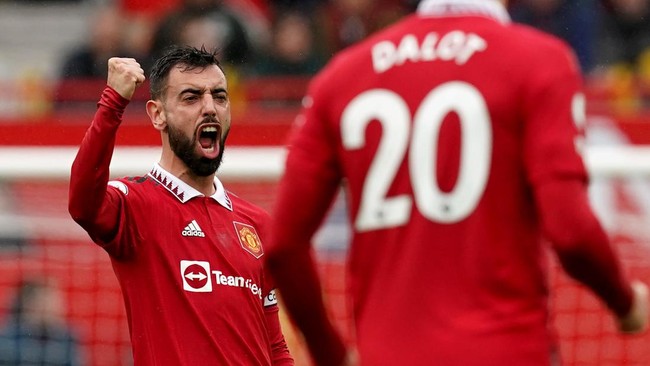Menurut Manchester Evening News, Bruno Fernandes adalah salah satu figur pemimpin MU saat ini. Bukan kejutan karena ban kapten pun biasa dipakainya di atas lapangan. Foto: PA Images via Getty Images/Martin Rickett - PA Images