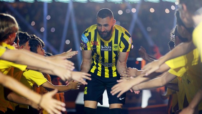 Arab Saudi - Karim Benzema resmi diperkenalkan sebagai pemain baru Al-Ittihad. Puluhan ribu suporter bergemuruh menyambut sang mega bintang.