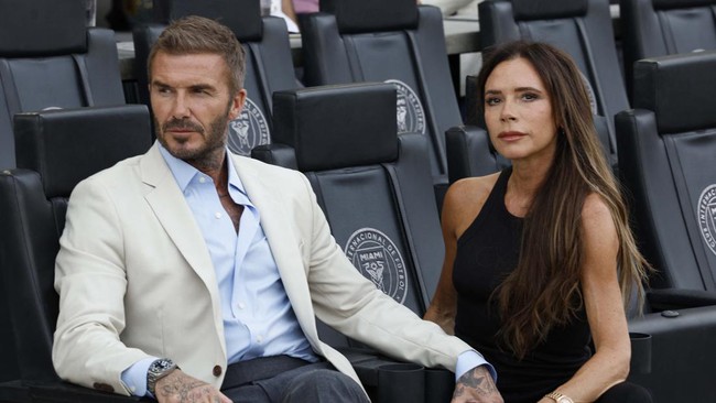 Pemilik Inter Miami David Beckham dan istrinya Victoria Beckham menyaksikan pertandingan Inter Miami vs Atlanta United di laga kedua fase grup Leagues Cup digelar di DRV PNK Stadium, Rabu (26/7) pagi WIB.