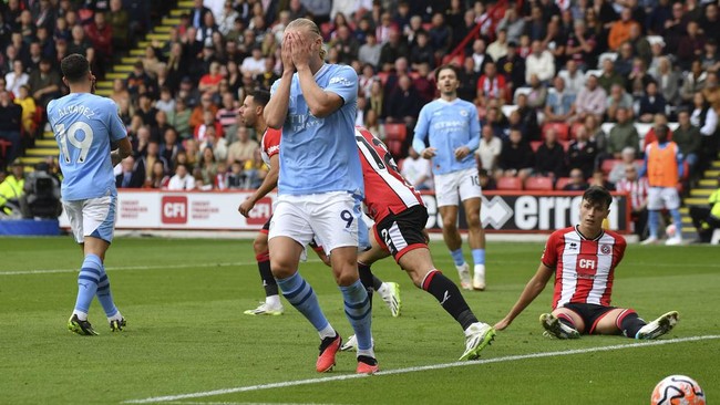Bermain di Bramall Lane Stadium, Sheffield, Minggu (27/8/2023), City sempat kesulitan melawan tuan rumah. Setelah Haaland sempat gagal penalti, skor berakhir imbang 0-0 saat jeda.