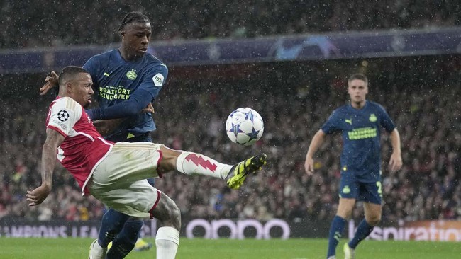 London - Arsenal menggilas PSV Eindhoven dalam laga perdana Grup B Liga Champions 2023/2024. Meriam London tampil menyalak dan menang 4-0 di kandang.