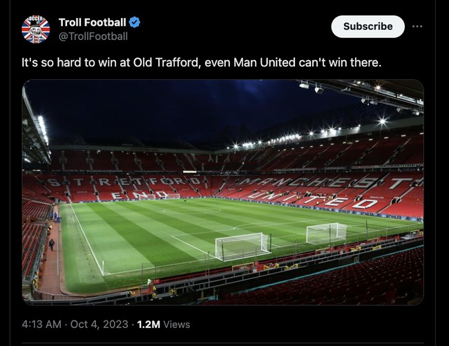 Menang di Old Trafford itu tidak mudah. Bahkan kemenangan pun sulit diraih oleh MU sang tuan rumah! Foto: dok. Internet/X (Twitter)