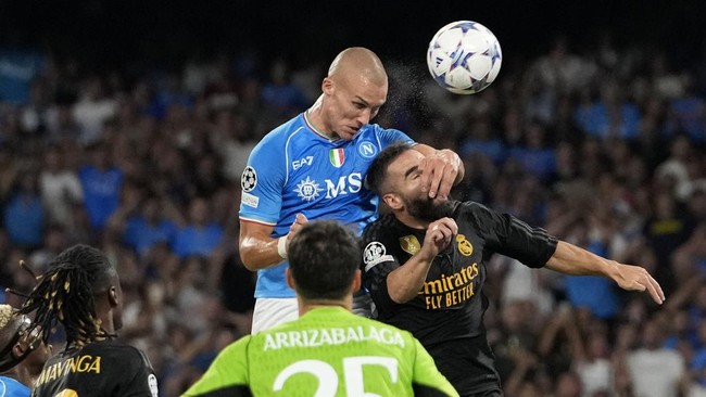 Bermain di Stadion Diego Armando Maradona, Naples, Rabu (4/10/2023) dini hari WIB, Napoli dan Real Madrid saling jual beli serangan sejak awal.