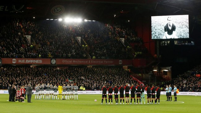 Beginilah suasana mengheningkan cipta sebelum laga Sheffield United vs Manchester United di Bramall Lane. Foto: Action Images via Reuters/ED SYKES