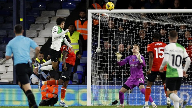 Luis Diaz bikin gol di menit-menit akhir saat Liverpool ketinggalan 0-1 di markas Luton Town. Foto: Action Images via Reuters/PETER CZIBORRA