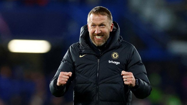 Graham Potter. Sejak dipecat Chelsea, Potter belum kembali melatih lagi. Namanya muncul karena pernah memoles Brighton yang mampu bermain cantik. Foto: Action Images via Reuters/PETER CZIBORRA