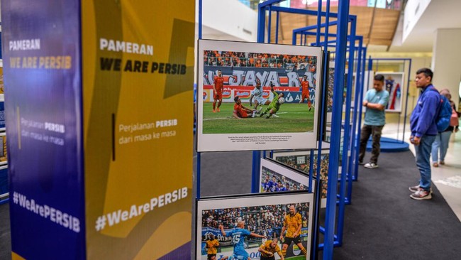 Bandung - Pameran foto Persib dari masa ke masa digelar. Foto yang dipamerkan antara lain sejarah tim Persib dari jaman perserikatan hingga Liga Indonesia 2023-2024.