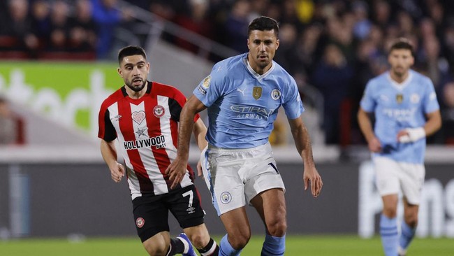 Awal pekan ini Man City bangkit dari ketinggalan untuk menang 3-1 melawan Brentford. Phil Foden bikin hat-trick, tapi terselip statistik apik Rodri. Foto: Action Images via Reuters/ANDREW COULDRIDGE