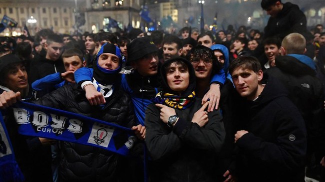 Italia - Ribuan penggemar Inter Milan turun ke Piazza Duomo di jantung kota Milan. Mereka merayakan Nerazzurri meraih gelar Serie A ke-20.